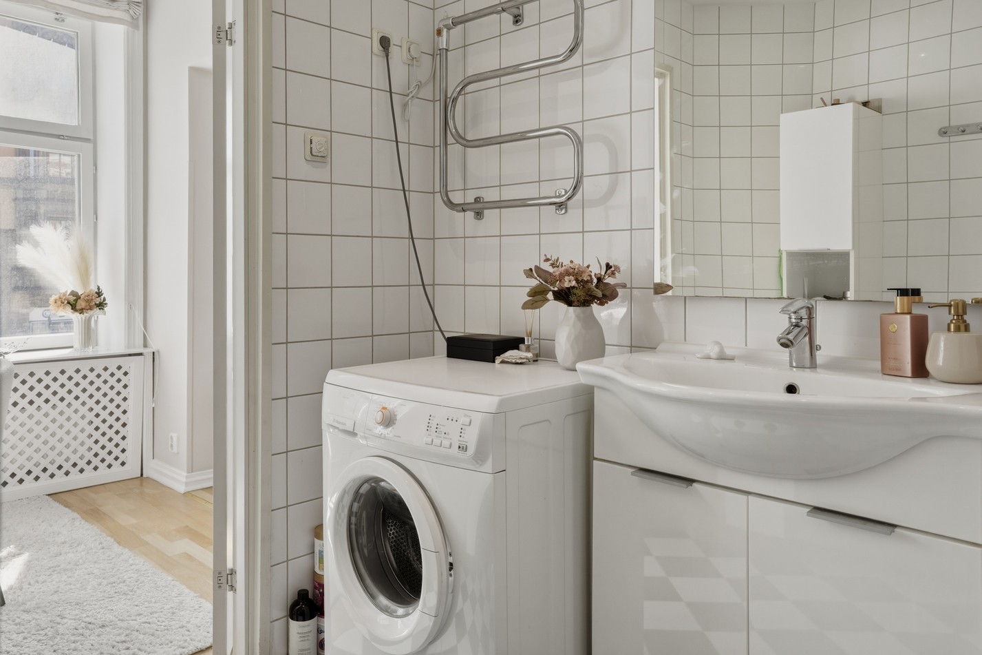 Välkommen till denna smakfulla och välplanerade bostad där tidstypisk charm möter modern funktionalitet. Här möts ni av ljusa ytskikt, generös takhöjd och ett härligt ljusinsläpp från flera stora fönsterpartier som skapar en luftig och inbjudande atmosfär. Det stilrena köket erbjuder goda arbetsytor, bra förvaring . En bostad som ger karaktär och elegans. Intill köket finns en trivsam matplats i öppen anslutning mot vardagsrummet, perfekt för både vardagsmiddagar och sociala tillställningar. Vardagsrummet är rymligt och lättmöblerat med plats för större soffgrupp och umgänge. Sovrummet ligger rofyllt placerat och rymmer större säng samt förvaring. Badrummet är fräscht med kaklade väggar, klinkergolv, dusch samt tvättmaskin som förenklar vardagen. En bostad med mycket charm, genomtänkt planlösning och fina materialval, här är det bara att flytta in och börja trivas.