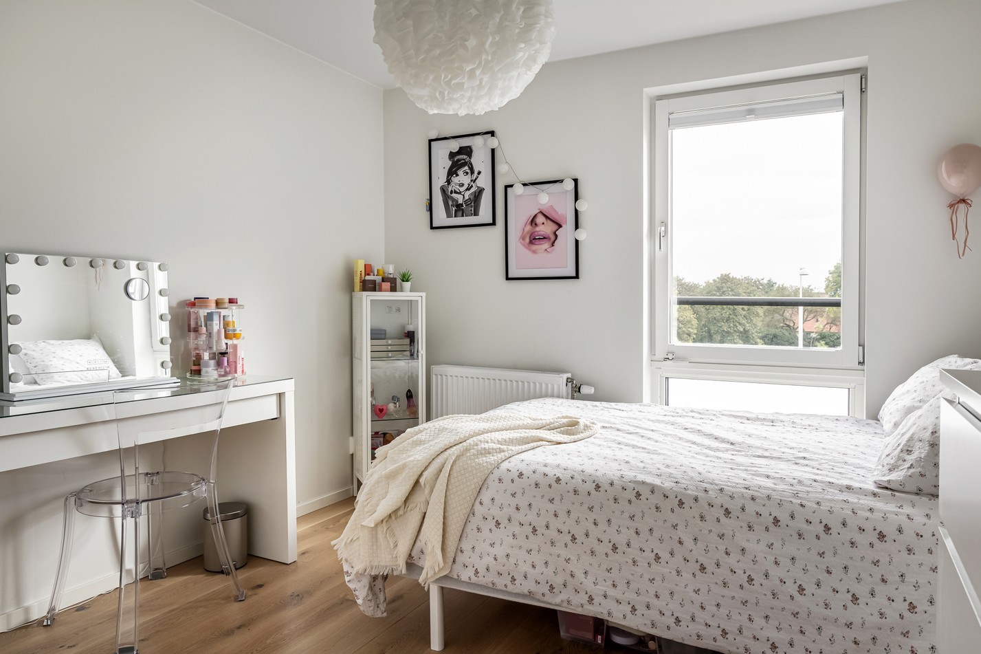 Ljust och trevligt sovrum med fönster som släpper in rikligt med dagsljus och ger rummet en härlig rymd. Här finns gott om plats för säng, skrivbord eller annan möblering efter behov. De neutrala väggarna och det fina trägolvet skapar en tidlös bas som enkelt kan anpassas efter personlig stil. Rummet lämpar sig lika bra som barn- eller tonårsrum som för gästrum eller hemmakontor – ett flexibelt utrymme som kan växa med familjens behov.