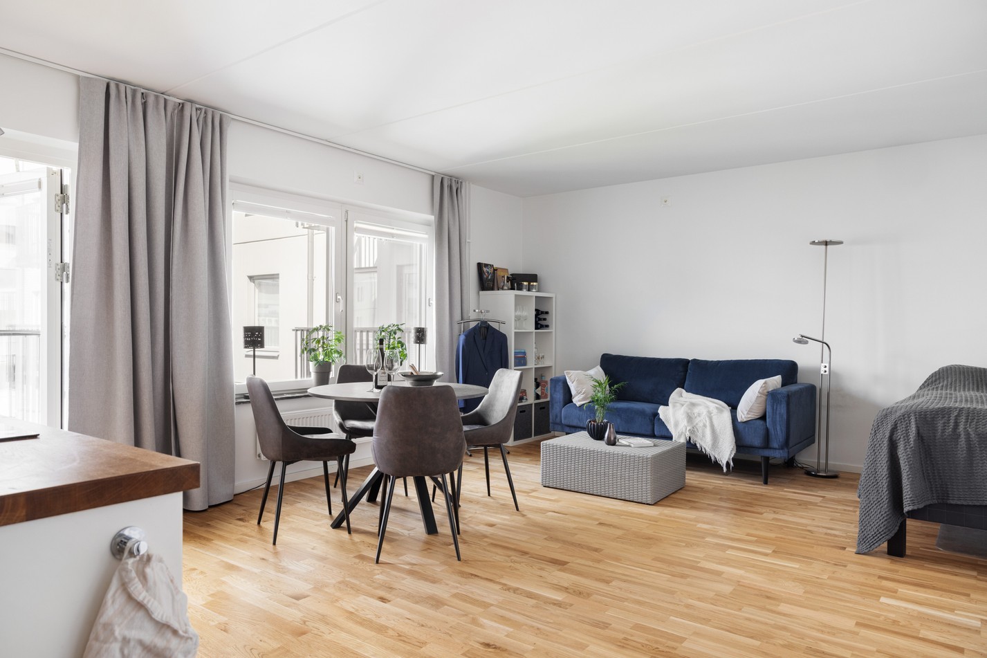 Välkommen till denna kvadratsmarta bostad med en perfekt balans mellan stil, funktion och komfort. Den öppna planlösningen mellan kök och vardagsrum skapar en social och inbjudande miljö, där de stora fönsterpartierna släpper in generöst med ljus och erbjuder en fin utsikt över innergården. Lägenheten har en smart sovalkov som ger en avskild och rofylld sovplats samt en rymlig skjutdörrsgarderob med gott om förvaring. Det fräscha badrummet är utrustat med egna tvättmöjligheter – en bekvämlighet som förenklar vardagen. Som en extra bonus väntar den västvända balkongen, perfekt för att njuta av eftermiddagssolen och mysiga kvällar i gott sällskap efter en dag vid vattnet. Ett hem att trivas i – varmt välkommen på visning!