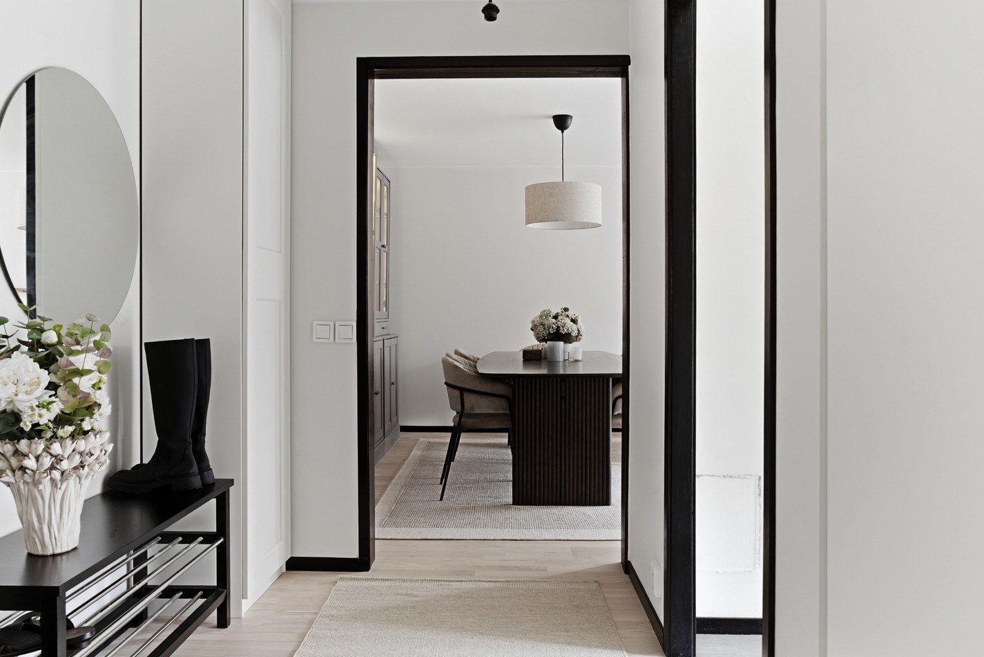Välkomnande hall med generösa avhängningsmöjligheter och smart förvaring. En praktisk entré som ger ett fint första intryck av hemmet.