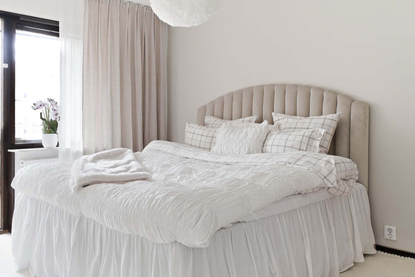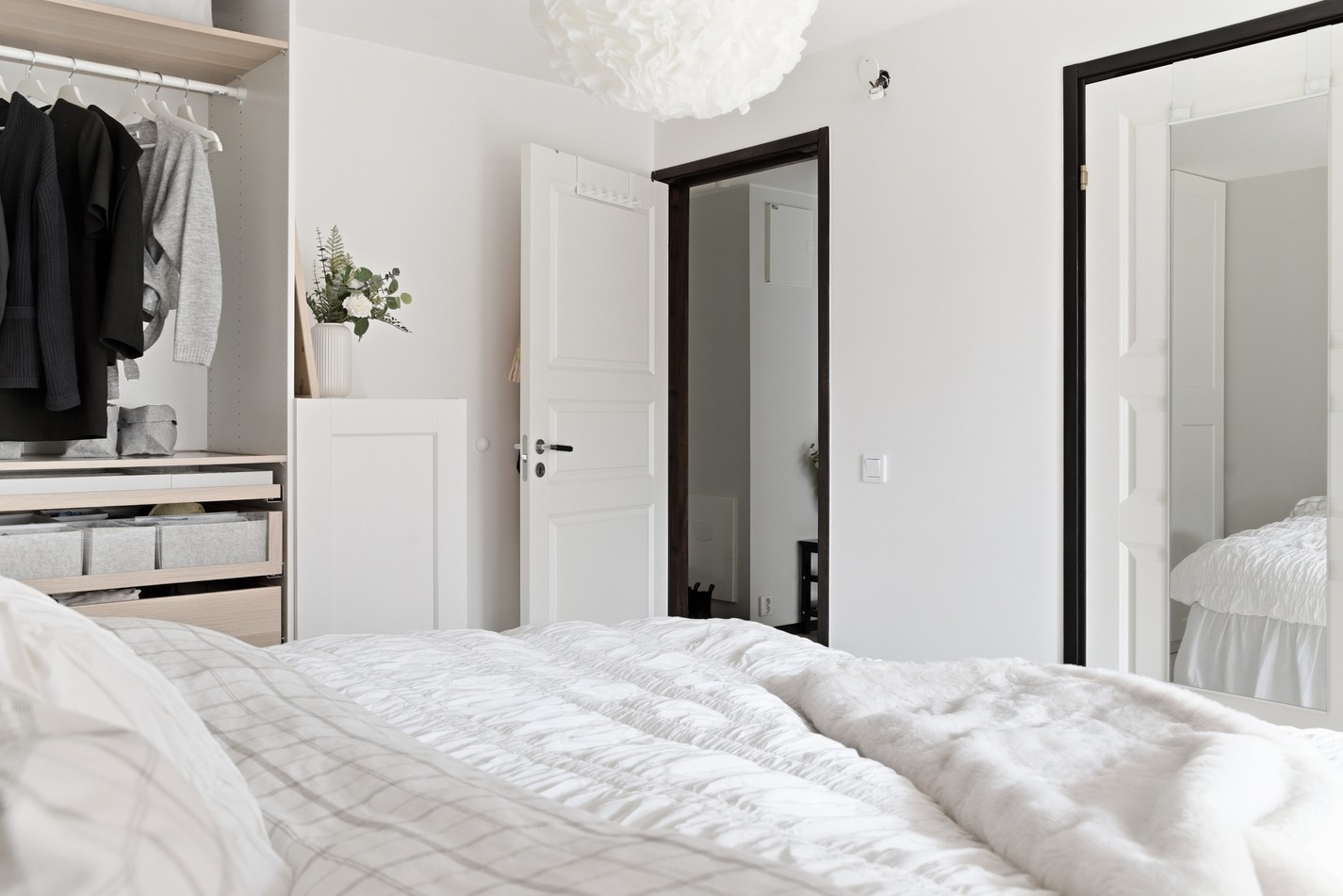Trivsamt sovrum med plats för dubbelsäng och kompletterande möbler efter behov. Härifrån nås den härliga balkongen som blir en naturlig förlängning av rummet.