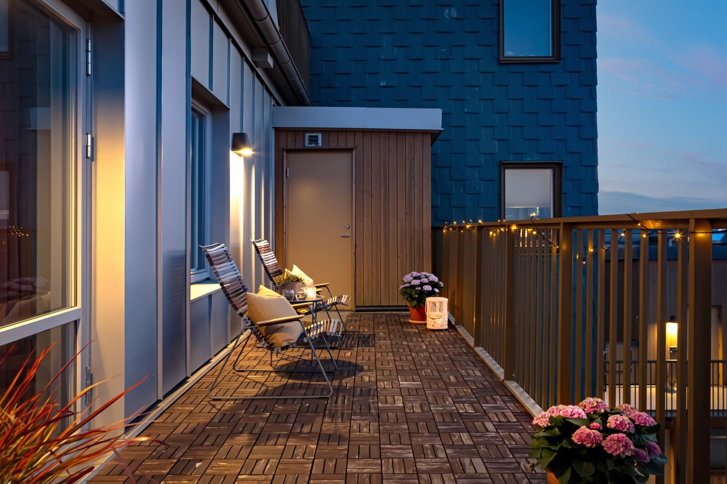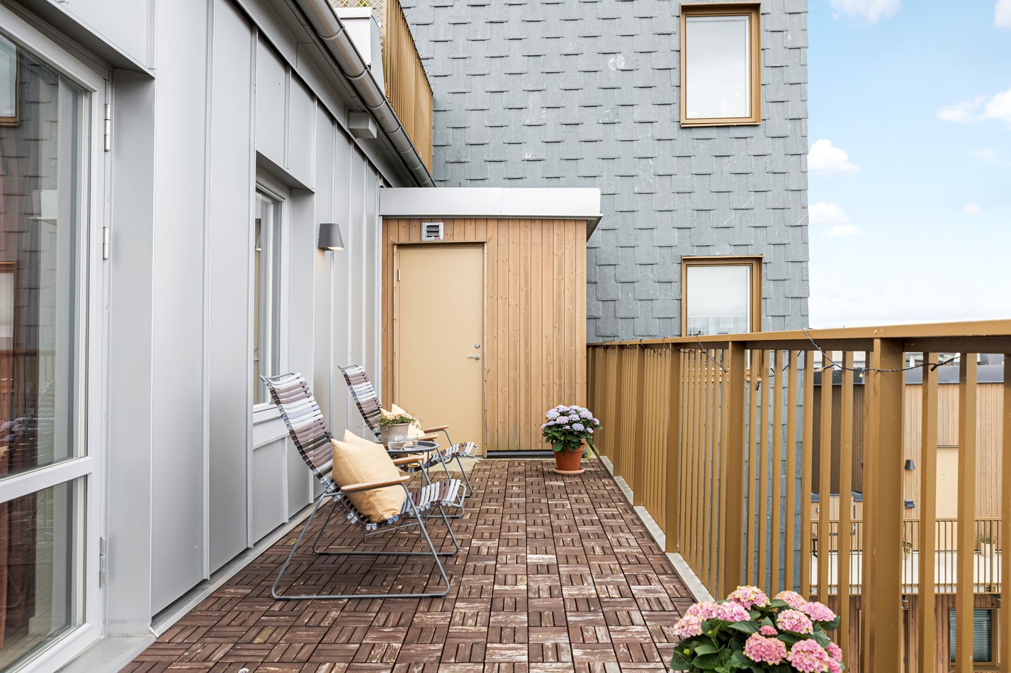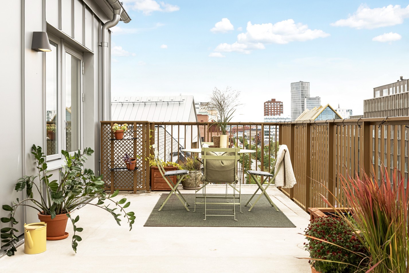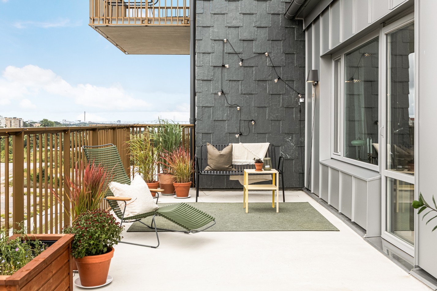 Modern trea med social planlösning, dubbla terrasser och utsikt som aldrig blir gammal
