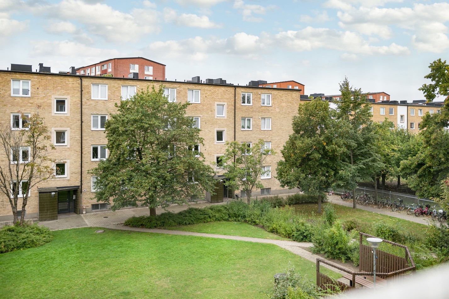 Gård: Det finns grillar på gårdsplatser som är fria att använda och även lekplatser med många sittplatser för de som bara vill njuta i solen.