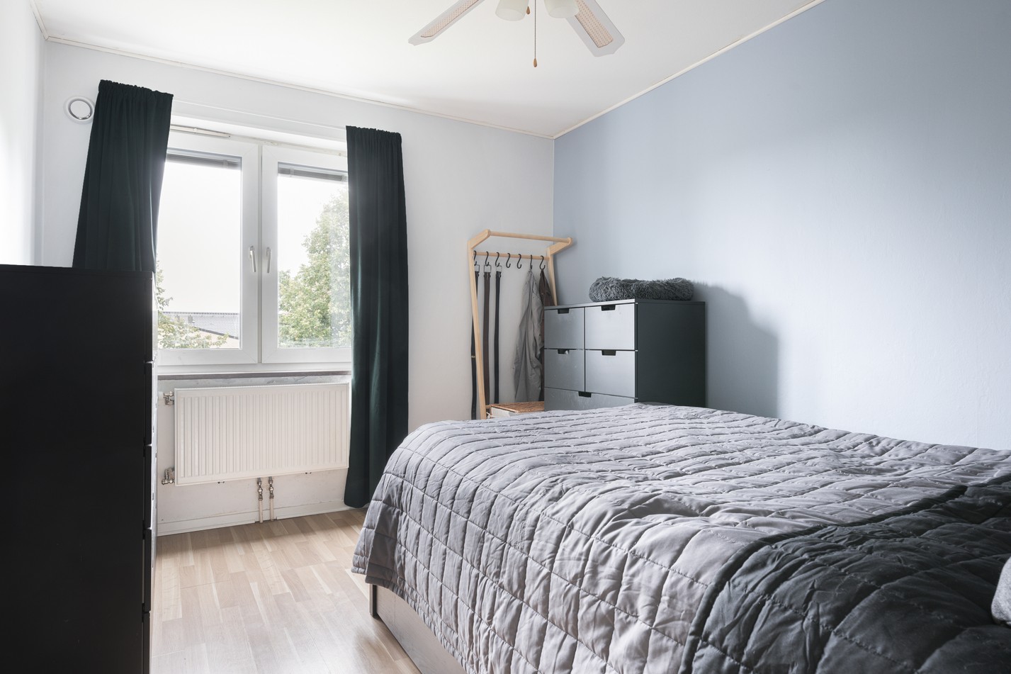 "Sovrummet är lugnt beläget med plats för dubbelsäng och förvaring. Fönstret vetter mot husets framsida och ger ett behagligt ljus samt en avslappnande atmosfär – perfekt för god nattsömn."