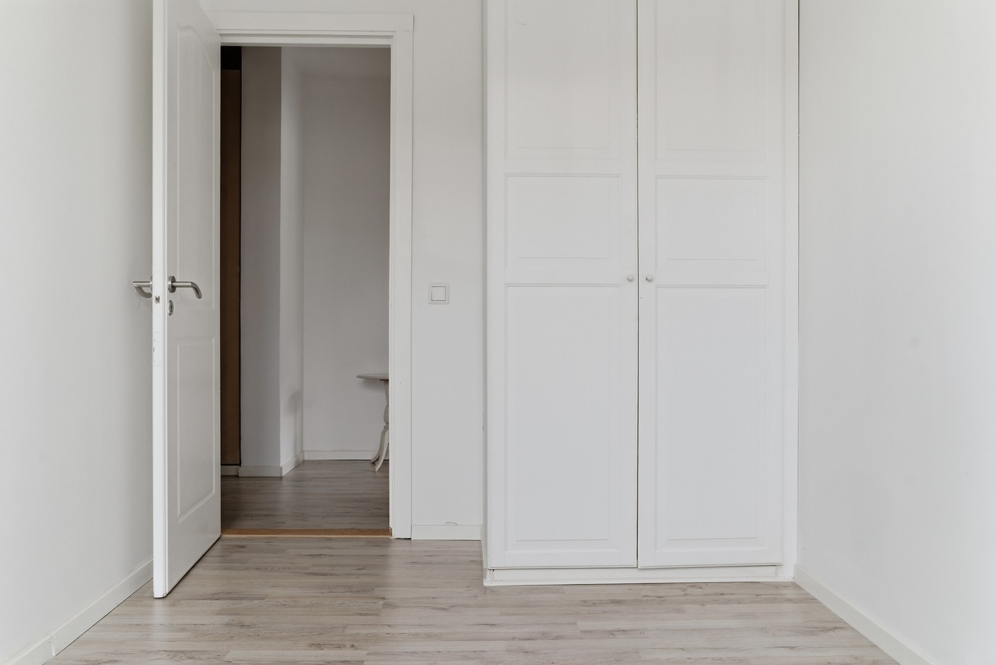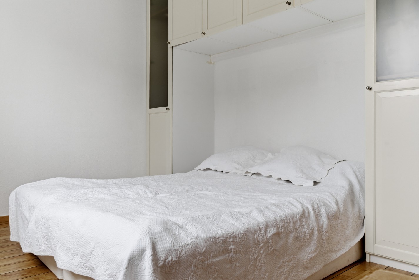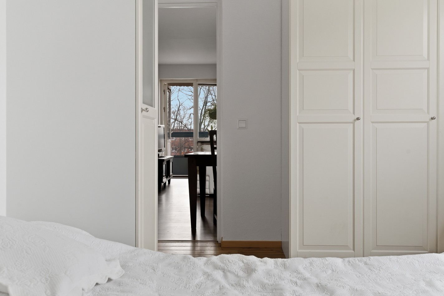Rofyllt och ljust sovrum med plats för dubbelsäng och goda förvaringsmöjligheter i garderober. De ljusa ytskikten tillsammans med fint ljusinsläpp skapar en lugn och harmonisk atmosfär – en perfekt plats för vila och återhämtning.