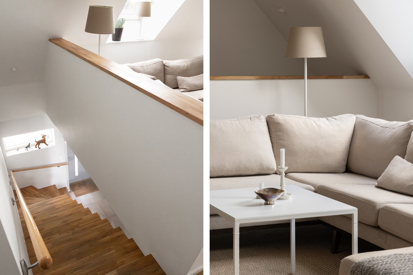 Luftigt och trivsamt allrum på ovanvåningen – en perfekt plats för familjens lugna stunder. De stora takfönstren släpper in ett härligt ljus som förstärker känslan av rymd och harmoni. Här finns gott om plats för soffgrupp och förvaring, och rummets centrala läge gör det till ett naturligt nav mellan husets övre sovrum. Ett flexibelt utrymme som passar lika bra för avkoppling som för lek och samvaro.
