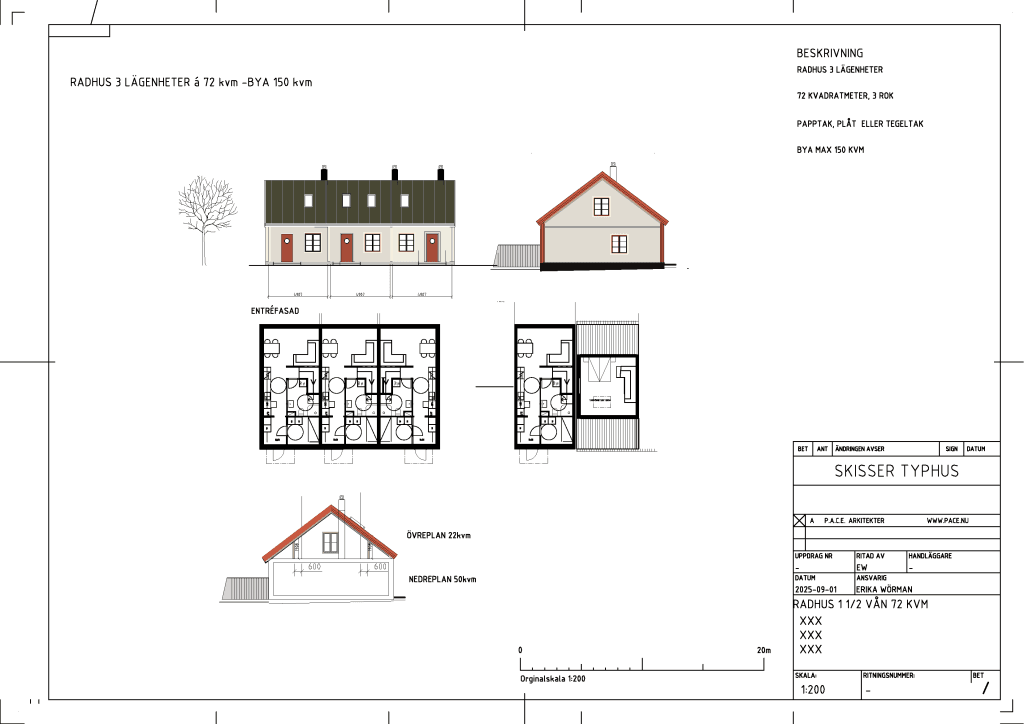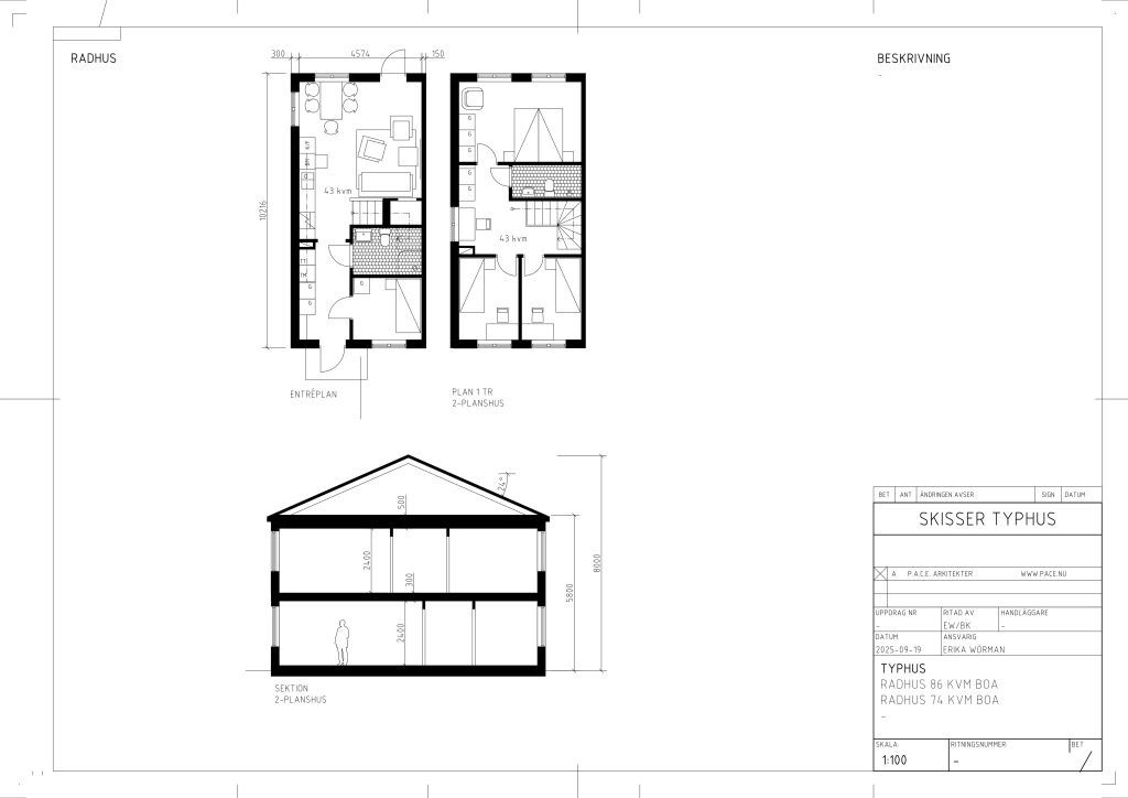 Ett generöst parhus i två plan med hela 86 kvm boyta. På entréplanet finns kök och vardagsrum i öppen planlösning – en naturlig samlingsplats för vardag, middagar och umgänge. Övre plan rymmer tre sovrum och ett allrum som kan användas flexibelt som lekyta, kontor eller extra vardagsrum.